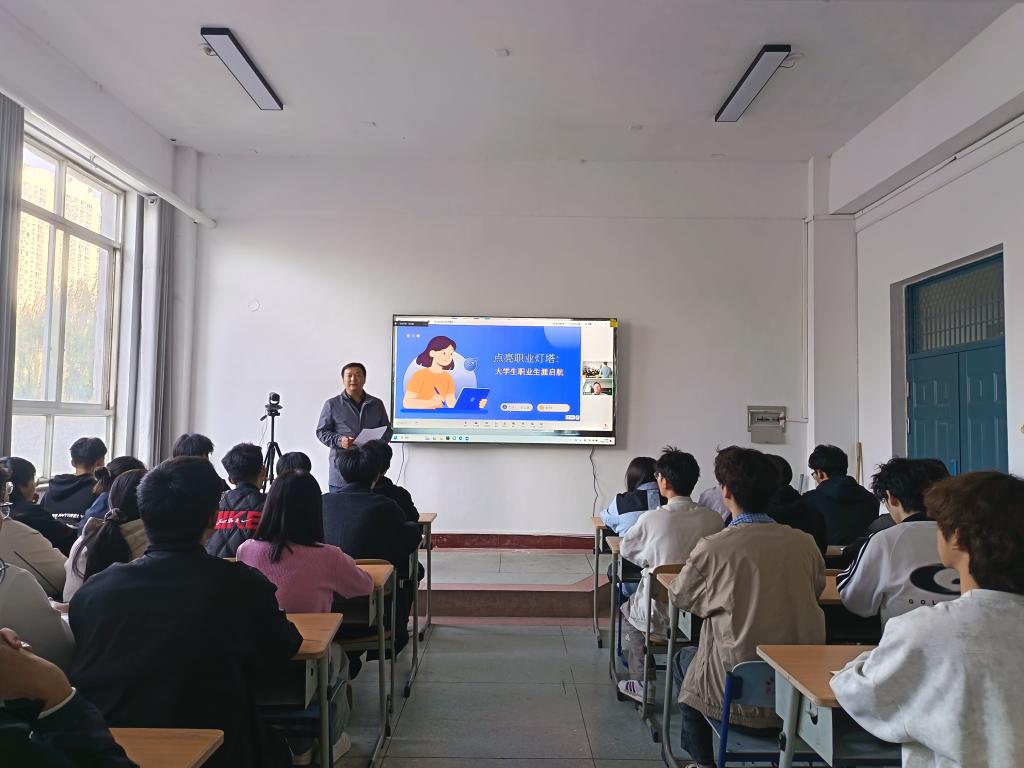 为帮助在校生提前树立职业规划意识,明确发展方向,破解求职与职业发展中的困惑,2025年11月2日下午,我院特邀2009届计算机网络技术专业优秀毕业生武云磊,通过线上直播形式开展主题为“点亮职业灯塔,启航精彩人生”的职业生涯规划专题培训。本次培训在一教112室举行,学院50余名学生参与线上培训。