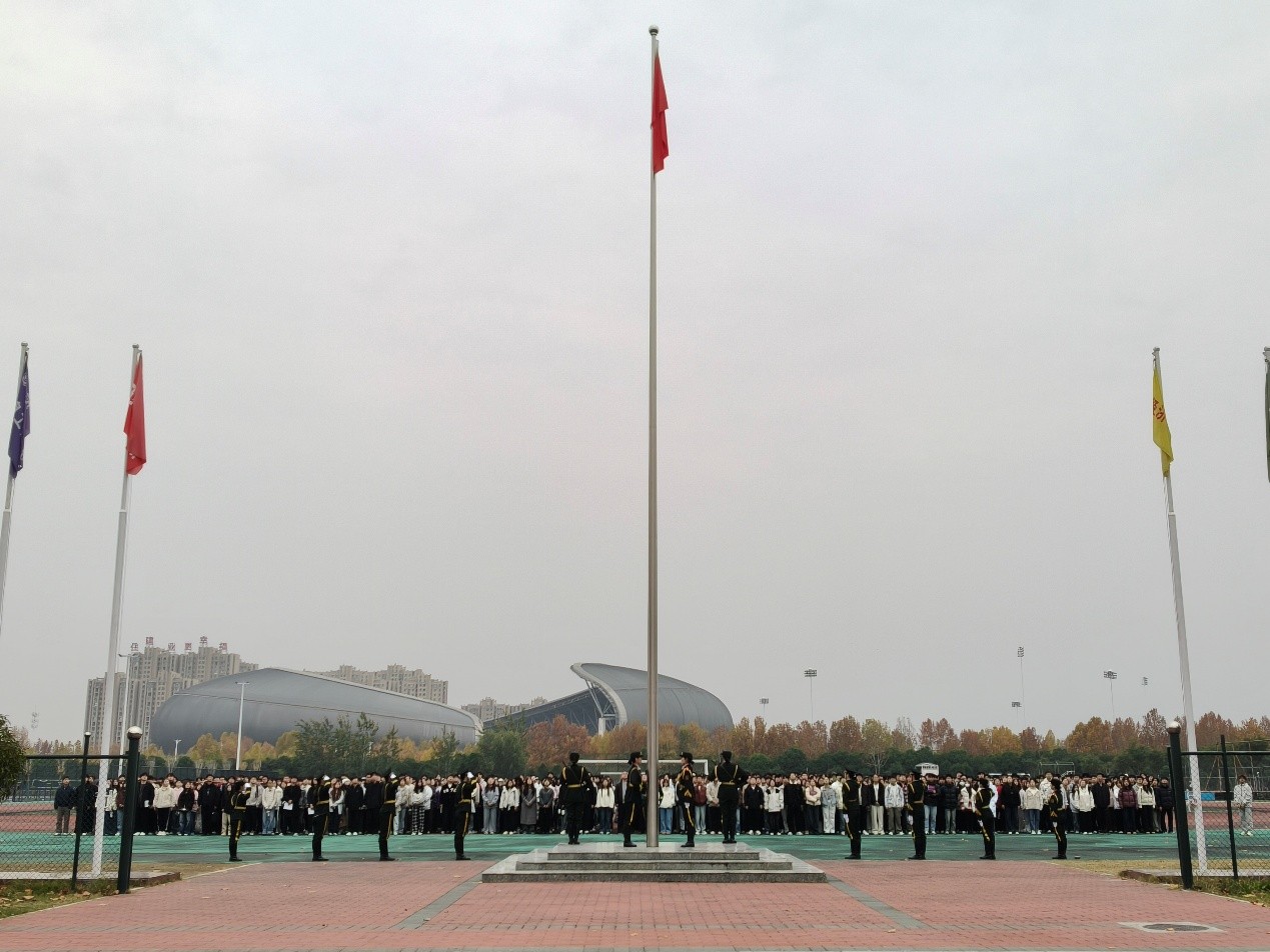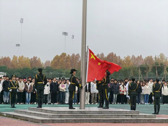 初冬清晨,薄雾裹着凉意漫过操场,信息工程学院全体师生已列队整齐。11月10日7时25分,随着广播指令落下,国旗护卫队身着制式服装,迈着铿锵正步护送五星红旗走向旗台,金属鞋跟叩击地面的声响,在静谧的晨空里格外清晰,全场目光瞬时聚焦于那抹醒目的红。