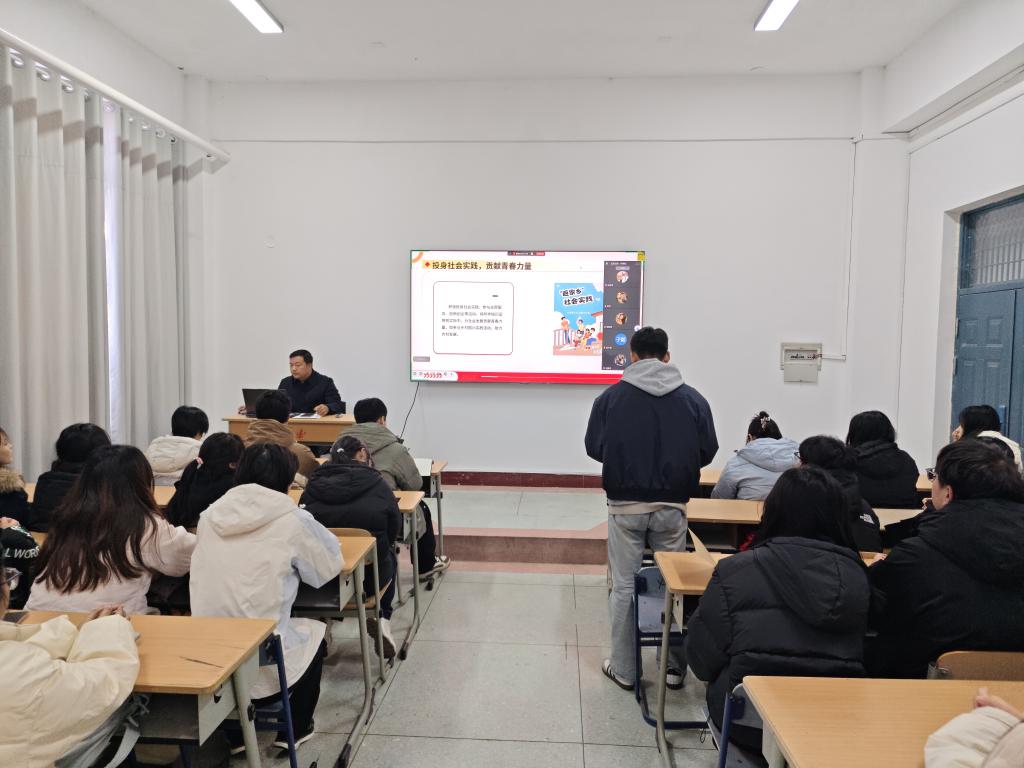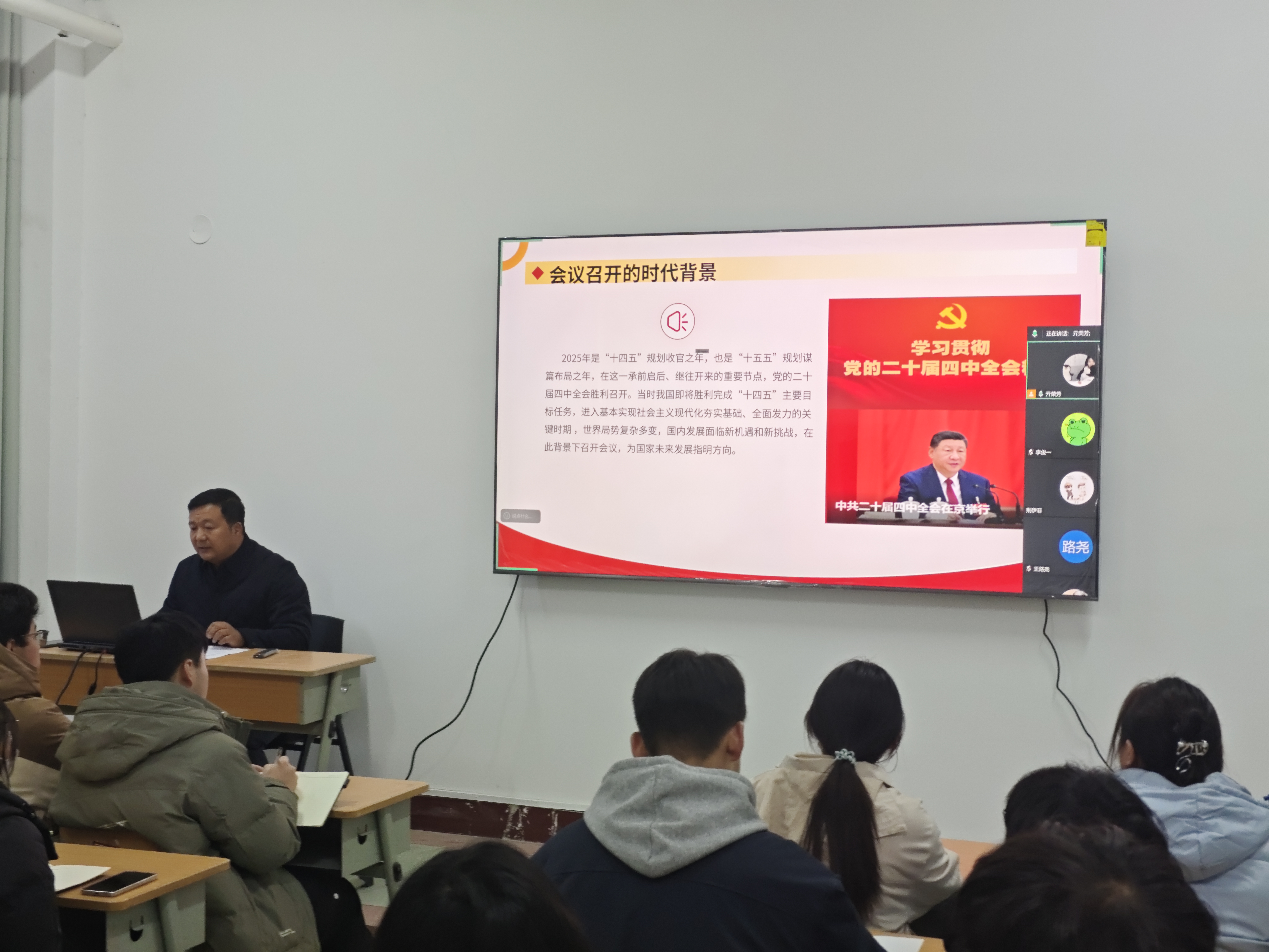 为深入学习贯彻党的二十届四中全会精神,引导青年学子坚定理想信念、强化责任担当,2025年12月5日,焦作大学信息工程学院党总支副书记赵杰文在1号教学楼112党建研习室,以“学习贯彻党的二十届四中全会精神,争做新时代有担当青年”为主题,对学院40名入党积极分子开展专题培训,同时校外实习的13名预备党员也通过线上腾讯会议参加了此次培训。